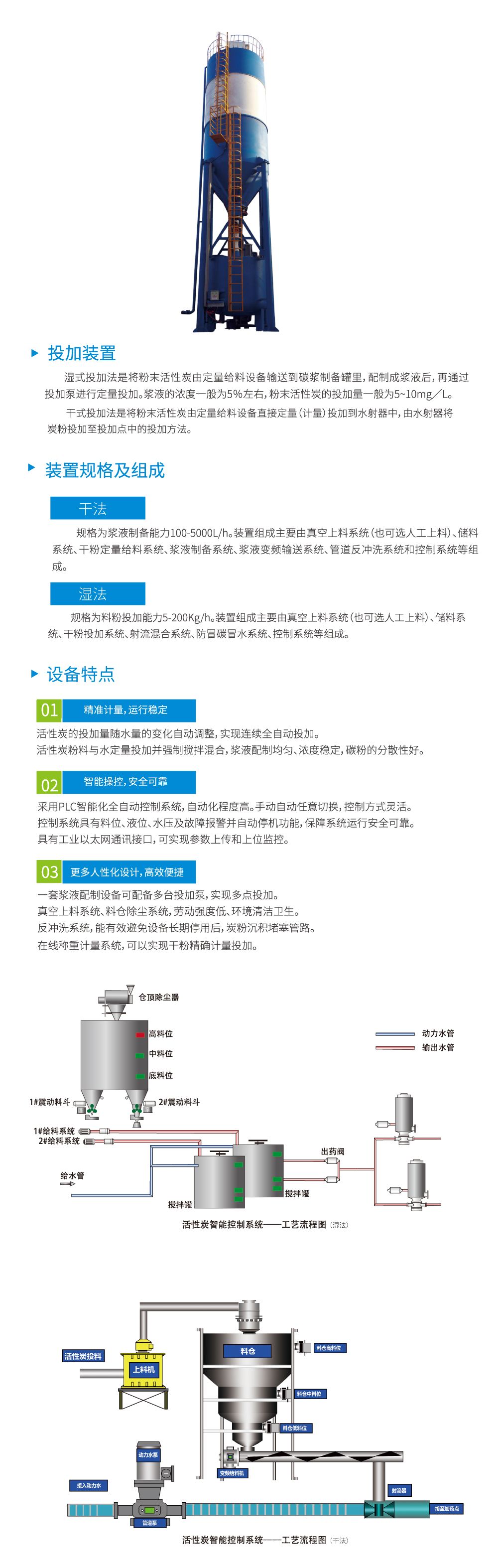 上海粉末活性炭投加装置-水厂除臭吸附设备?粉末活性炭投加装置分为:料仓系统、配制系统、输送系统。